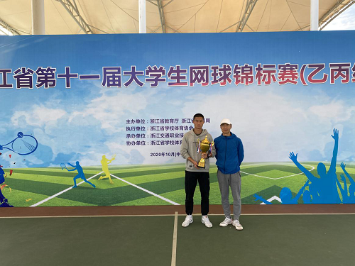 2020年10月21日至10月26日,由浙江省教育厅、浙江省体育局主办的第十一届浙江省大学生网球锦标赛(乙丙组)于在浙江交通职业技术学院顺利举办,我校基础部王晓老师带领学生参加了比赛。经过激烈的角逐,我校商务系李云杰同学在男单比赛中夺得了男子单打冠军,校网球队获得了男子团体第五名。