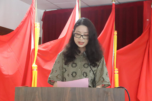 大会在庄严的国歌声中拉开帷幕。首先,张红老师带领全体新党员面向党旗,举右手握拳,庄严宣誓。18商务系移动商务的章驰宇同学作为新党员代表发言。他倡议学生党员“坚定理想信念,发挥党员先锋模范作用,在为人民服务中茁壮成长,在艰苦奋斗中砥砺前行,在实践中增长本领,做到不惧风雨、勇担重任,让青春在党和人民最需要的地方绽放绚丽之花。”