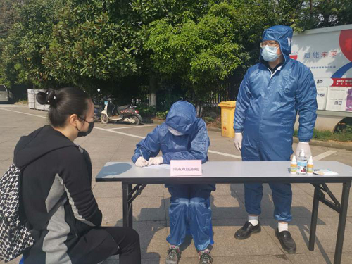 为进一步做好新冠肺炎疫情防控期间校园安全防范和开学准备工作, 4月14日上午,学校疫情防控工作领导小组协调组织相关部门人员联合开展了2020年春季开学新冠肺炎疫情防控演练。校党委书记、常务副院长王其军教授、副院长许迈进教授、党委副书记、纪委书记张乐弟、副院长高创宽教授等校领导,以及党院办、人事处、学生处、校团委、保卫处、总务处等相关部门负责人,共近40名教职员工和2名学生志愿者参与演练。