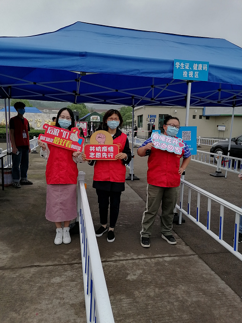 学生返校复课第一道程序是有序进校。学生工作、安全保卫、后勤管理线工作人员及志愿者守候在各个岗位。返校的同学按照现场安保人员指引,每人间隔一米排队,自正大门四条通道入校,经身份确认、绿码核验、体温检测,未发现异常方可进入。随身携带的行李也会经过一道”检验工序”,须经过消毒才可带入宿舍。同时设置大件行李志愿者服务队,由爱心车队协助运送。