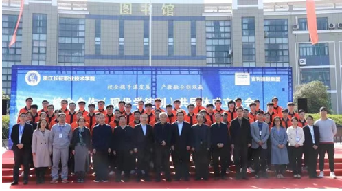 2019年11月14日,我校与浙江吉利控股集团有限公司(以下简称“吉利控股集团”)校企合作(现代学徒制)共同体成立大会——暨“成蝶计划”学徒制开班仪式在图书馆前广场举行。