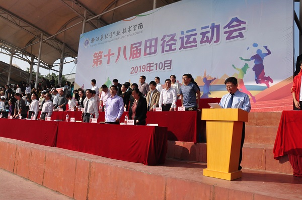 2019年10月24日,浙江长征职业技术学院第十八届田径运动会开幕式在校田径场隆重举行。参加开幕式的有校党委书记常务副院长王其军教授、副院长杜宝山教授、副院长许迈进教授、副院长高创宽教授,以及各系主任、总支书记和部门负责人。开幕式由副院长杜宝山教授主持,副院长许迈进教授致开幕词,党委书记王其军教授宣布第十八届田径运动会开幕。