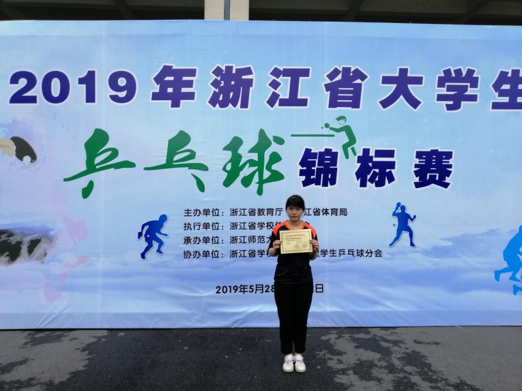 2019年5月28日——6月2日,由浙江省教育厅、浙江省体育局主办的浙江省大学生乒乓球锦标赛在浙江师范大学(金华校区)举行,由我校郭海莲老师带队参加。经过紧张激烈的角逐,我校乒乓球队员顾盼获得女子单打第一名;顾盼、邵倩芸、叶雅雯、陈歆颍、徐佳颖获得了女子团体第二名;胡新觉获得男子单打第八名的优异成绩。此次比赛,我校队员们表现出色,顽强拼搏、以高超的乒乓球技艺和高尚的体育精神风貌赢得了广泛的好评。会计系邵倩芸、胡新觉表现尤为抢眼,分别获得“优秀运动员”称号。在此次比赛中,我校运动健儿充分展现出了长征学子的凝聚力和精诚合作的团队意识。