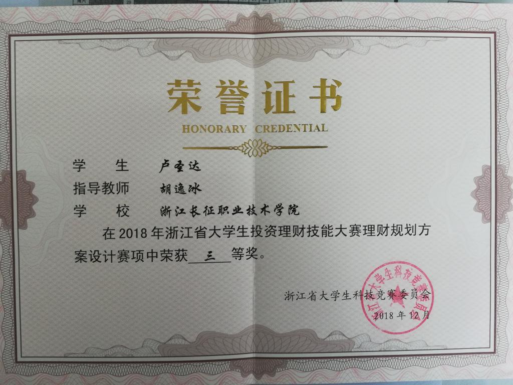 浙江省大学生投资理财技能大赛由浙江省教育厅主办,浙江金融职业学院承办,是浙江省财经商贸类的官方赛事。大赛面向浙江在校大学生,旨在培养大学生的投资理财意识,提高大学生投资理财技能和岗位实践能力,选拔优秀人才,进一步推进教学与实践工作的对接。此次我校学生参与的是浙江省大学生投资理财技能大赛理财规划现场赛,与来自全省高职院校和部分本科院校的学生同场竞技,在获奖比例较低的赛事中荣获如此佳绩,展现了财管系师生在投资理财方面技术技能。
