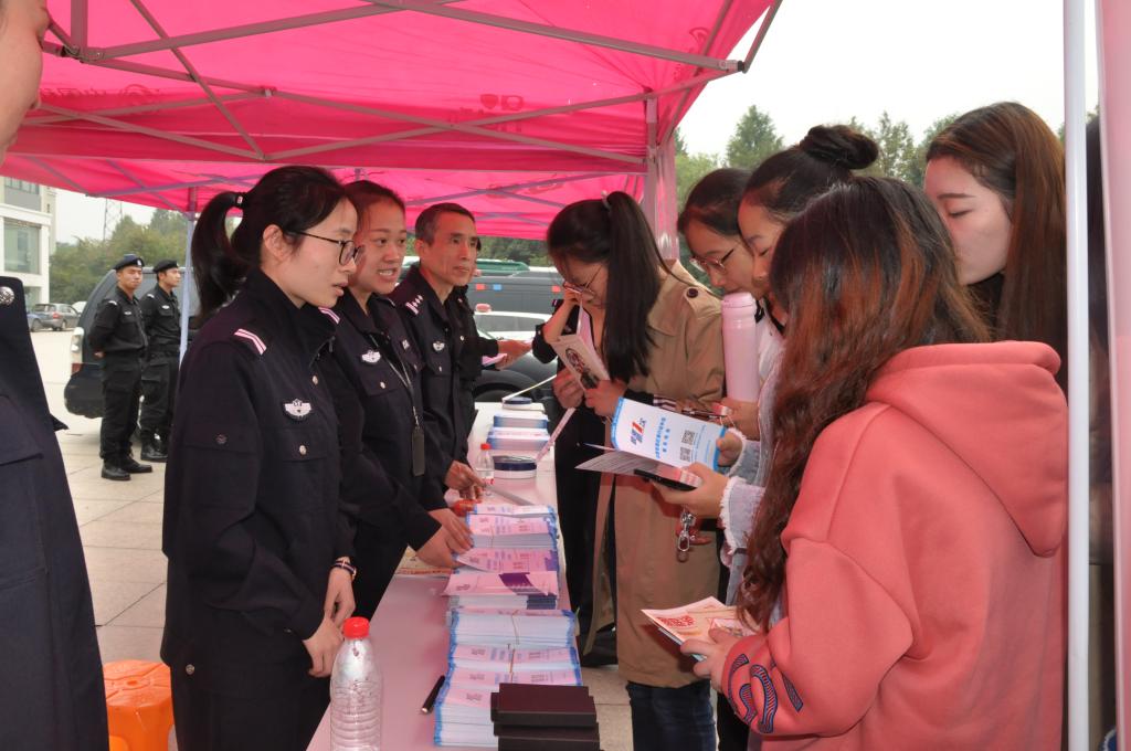 仪式现场,西湖公安分局巡特警大队、禁毒大队、出入境管理大队、反恐怖大队、刑侦大队反诈中队、西湖区消防大队、留下街道司法所、留下派出所等单位开展了校园安全宣传以及各类咨询活动,西湖分局巡特警大队向同学们示范了一些男女生紧急防身实用技巧。