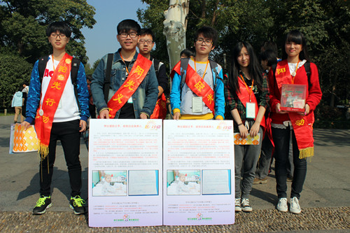 2014年10月25日,建工系学生会青协全体成员以及各部门代表共11人参加了在杭州六公园举办的“伸出援助之手,拯救白血病患儿”阳光行动。