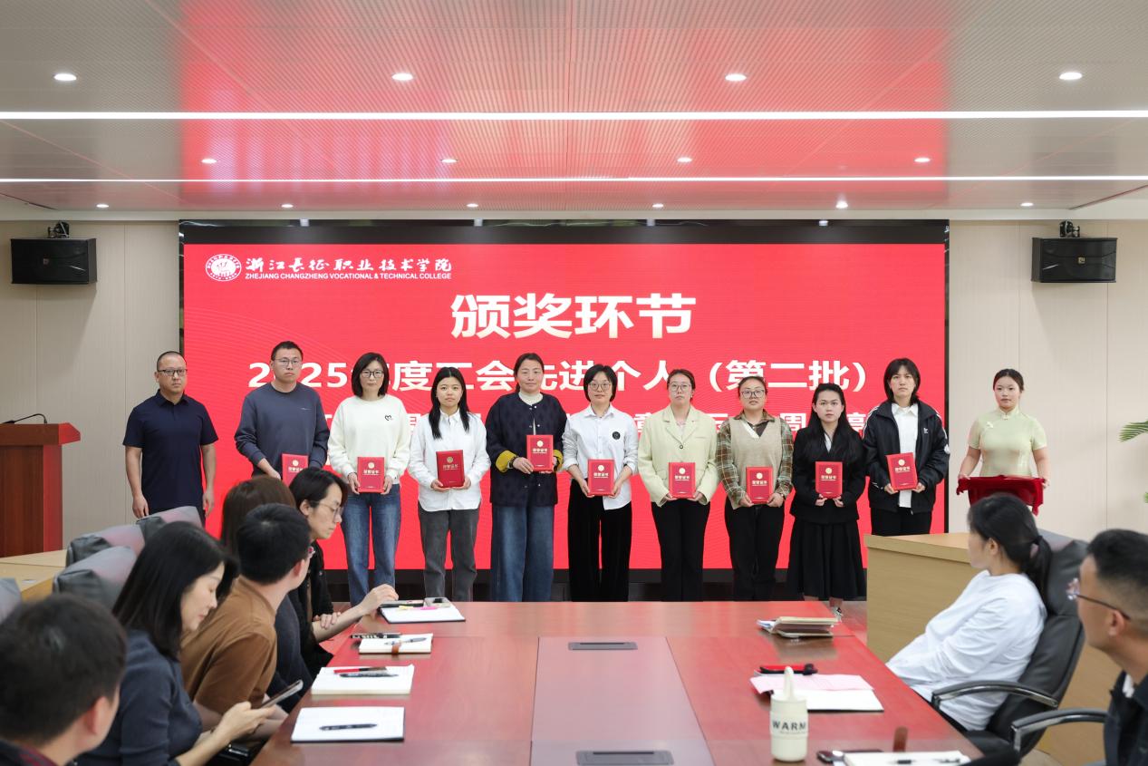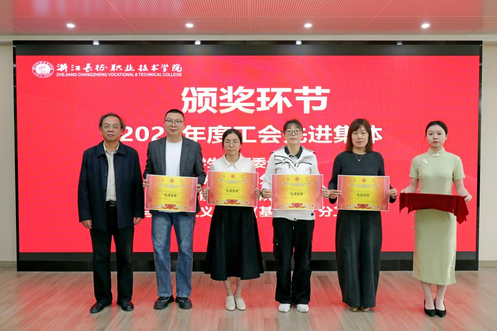 会上,校工会副主席陈建云宣读了表彰决定,并举行颁奖仪式。会议对“2026年新年教职工联欢会”优秀节目获奖单位进行了表彰,基础部分工会获“最具人气奖”,卫生与健康学院分工会、学生处团委分工会获“最具创意奖”,计算机与信息技术学院分工会、人文与管理学院分工会获“最具表现力奖”,建筑工程学院分工会、行政第二分工会获“最具活力奖”。随后,大会依次为2025年度工会先进个人、优秀工会干部和先进集体颁奖,受表彰代表依次上台领奖。