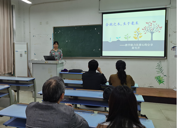 会上,蒋雪芹从“比赛历程”“比赛赛制”和“材料准备”三个方面展开,重点分享了如何选题、如何组建团队、如何撰写教学实施报告、如何设计教案、如何拍摄视频等,给准备2023年的校赛、省赛的教师们提供了宝贵的经验,引发了教师们的热烈讨论。