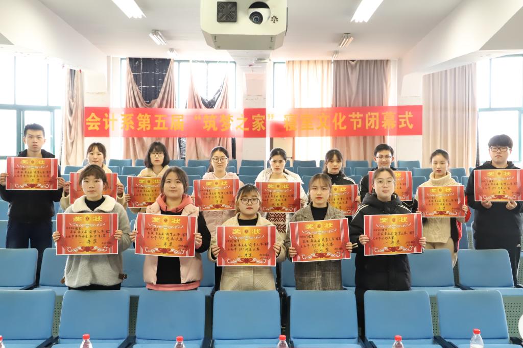 3月6日下午,会计系第五届“筑梦之家”寝室文化节闭幕式在一号教学楼1218教室举行。会计系学工办主任陈敏洁,辅导员苏芳、张琴琴、陆海燕、钟娅芬、周晶晶、侯娟、徐婷婷、徐粉粉等出席本次闭幕式。