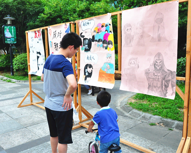 我校暑期实践队通过实地考察社区对于反邪教、禁毒防艾的认知程度,以发放宣传知识手册、漫画展、知识竞猜、儿童涂鸦、“大手牵小手”等喜闻乐见的方式,结合小区电子屏滚动播放宣传标语、面对面与社区居民交流宣传反邪教、禁毒防艾的知识。让翰墨和石马社区所有参与到其中的居民以及广大青少年对邪教组织的危害性和禁毒防艾的重要性有了更深刻的认识,增强了社区居民的反邪教和禁毒防艾意识,达到宣传的预期目的,得到了广大居民群众的一致好评。