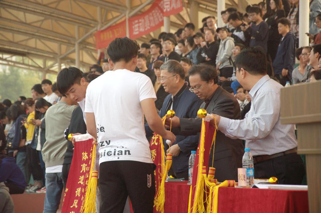 闭幕式上,在主席台就坐的学院领导和有关部门负责同志为获奖单位代表颁奖。本次比赛共1447名学生和教工运动员参加了21个项目的比赛,经过2天紧张激烈的角逐,共打破5个院记录,会计系葛娟娟同学打破了女子跳远记录和女子三级跳远记录,计信系高王哲同学打破了男子跳高记录,商务系龚春艳同学打破了女子跳高记录,会计系女二队打破了女子4*400米记录;会计系,建筑工程系,财务管理系分别获得团体总分前三名;会计系、管理系、建筑工程系、计算机与信息技术系获得道德风尚奖;财管系、应用语言系、贸易系、商务系获有组织奖;会计系获得啦啦操一等奖,管理系、商务系、贸易系获二等奖。