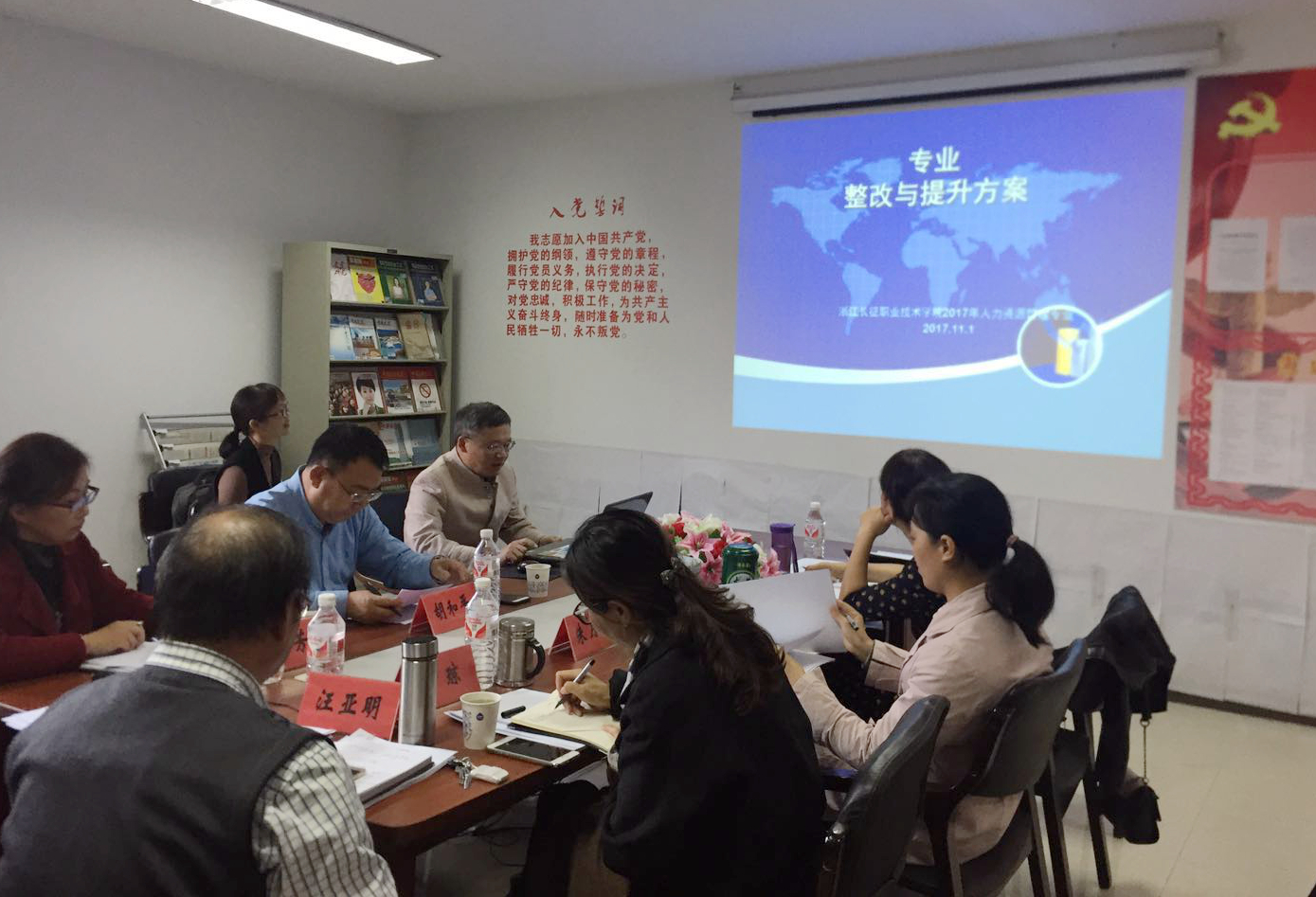 11月1日下午,管理系在实训楼北313教室,召开“专业整改与提升”专家论证会。论证会上,来自企业的两位总经理胡和平、王丽芳和本院领导组成专家组,管理系全体专任教师参加了论证会,论证会由管理系主任汪亚明教授主持。