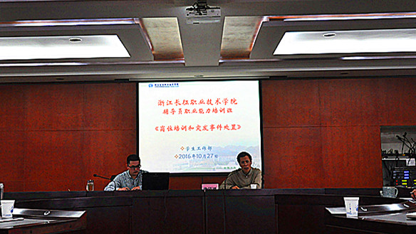 我院第六期辅导员职业能力培训班于2016年10月27日在学院第一会议室举行,培训班为期1天。本次培训班围绕岗位培训和突发事件处置的主题展开,会议开班仪式由学生处处长陆栋煜主持,学院高级顾问许迈进教授,各系党总支书记(副书记)、学生处、团委全体及全院辅导员、班主任参加。