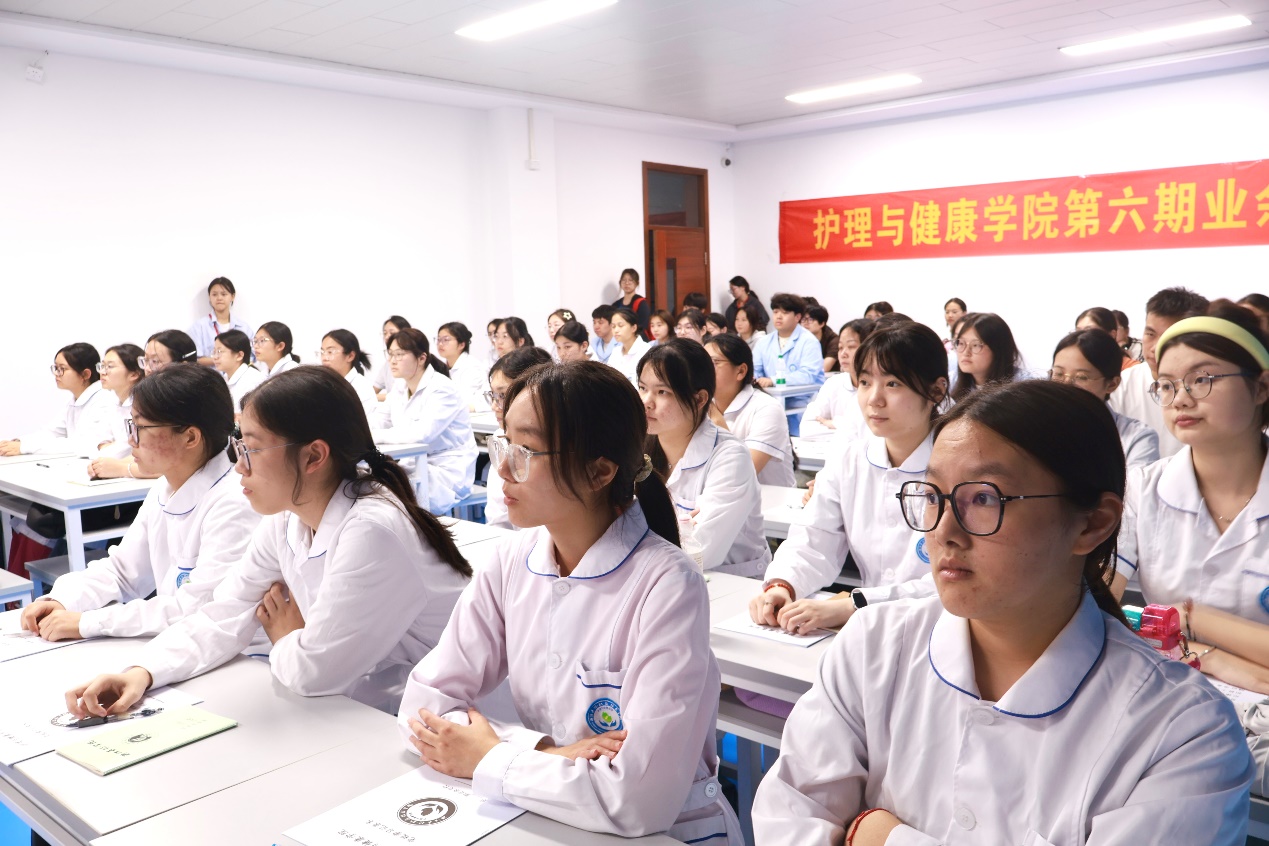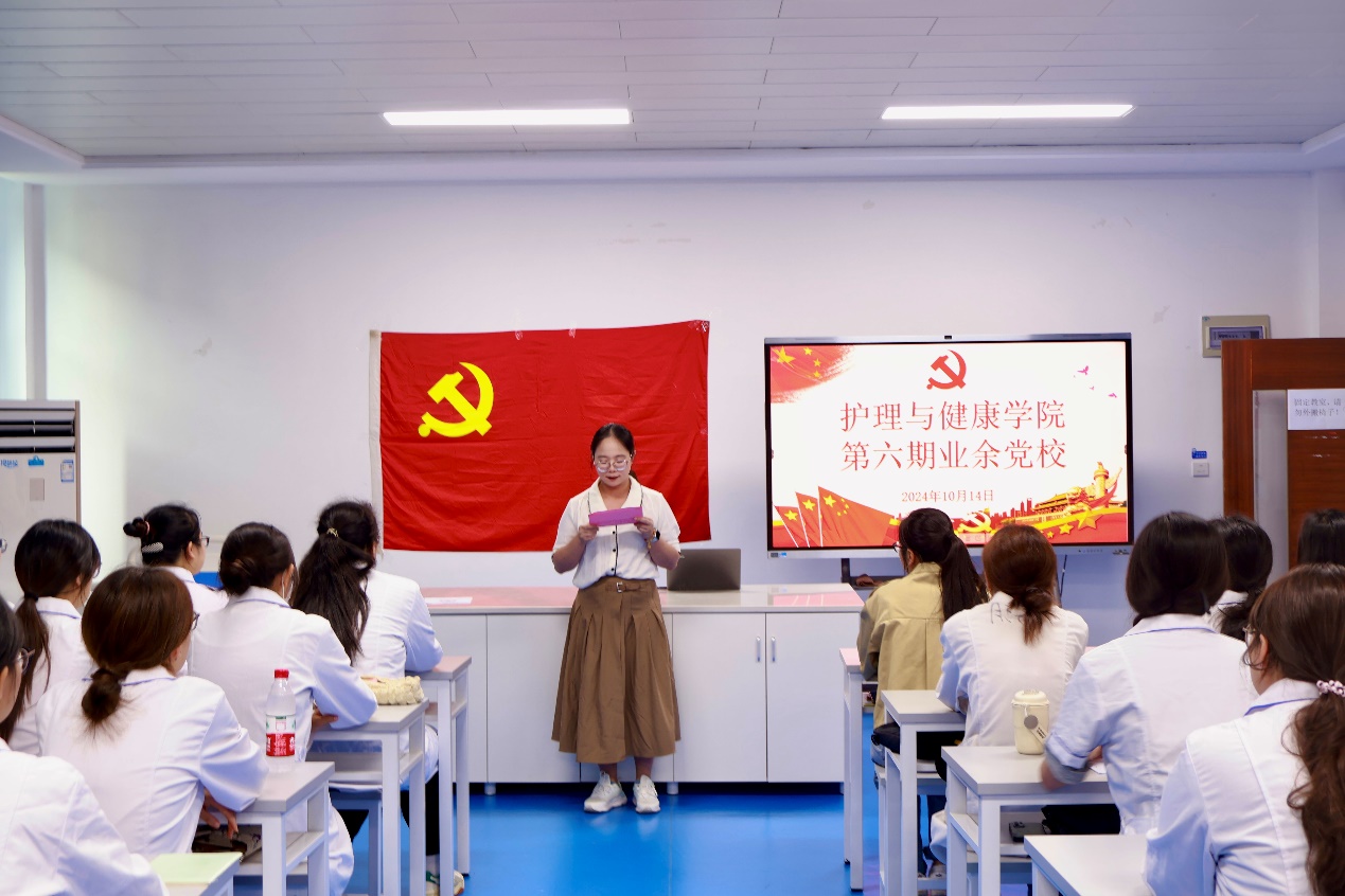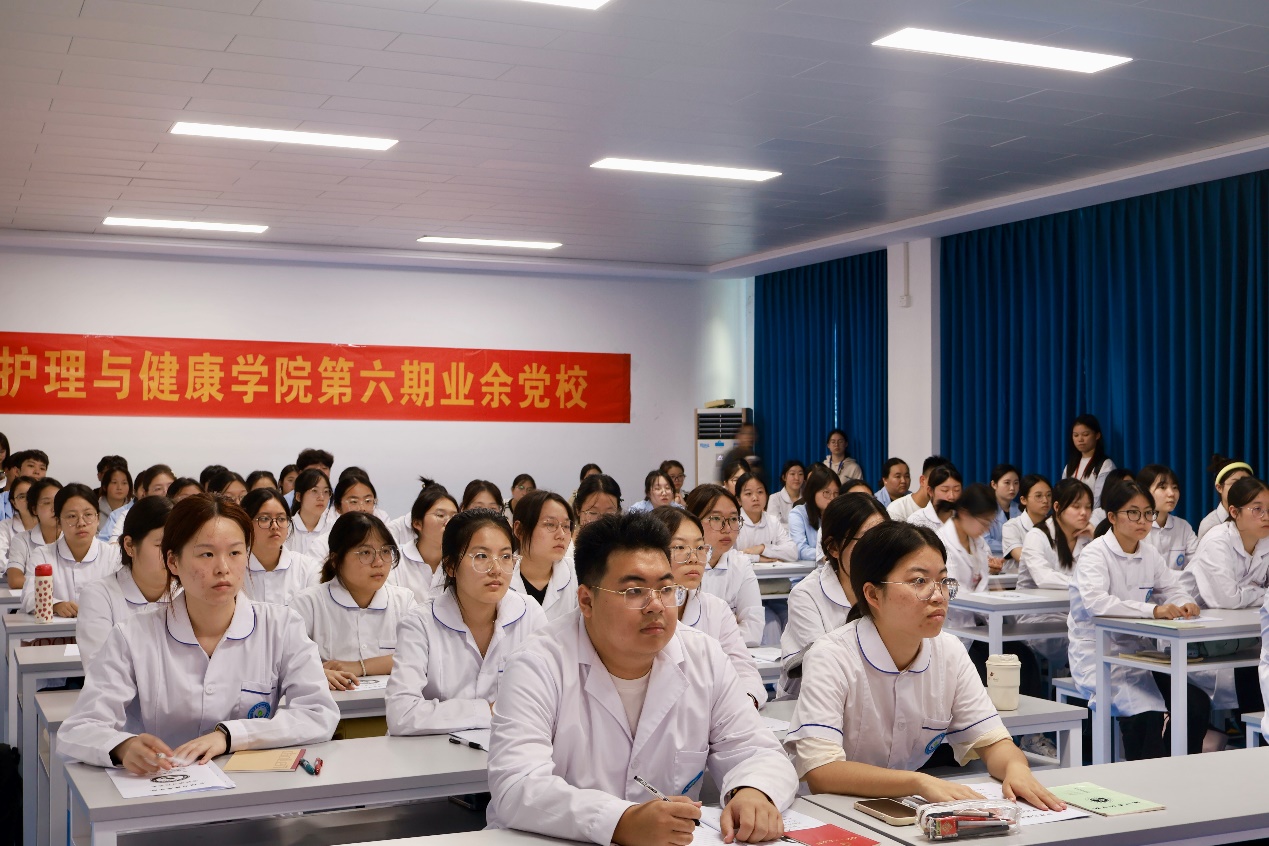 为深入学习贯彻党的二十届三中全会精神,做好入党积极分子的培养、教育和考察工作,近日,护理与健康学院在实训楼北207室开展了第六期业余党校开班典礼暨党课第一讲。护理与健康学院党总支书记张泱、副书记蒋霄蕊,以及教师代表和74位学员参加了开班典礼。
